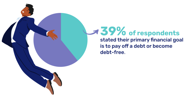 - 39% of respondents stated their primary financial goal is to pay off a debt or become debt-free.