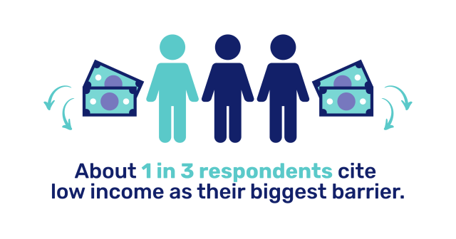 - 32.5% cite “my income is too low” as the biggest roadblock.