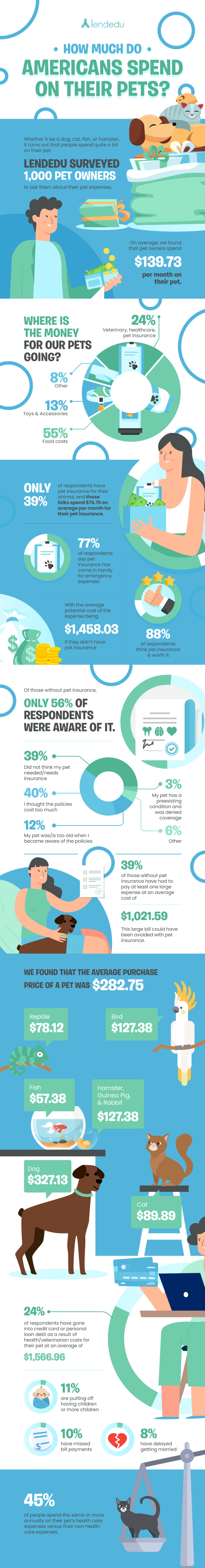 LendEDU ran a survey polling 1,000 adult American pet owners to see just how much people spend on their pets, with or without pet insurance.