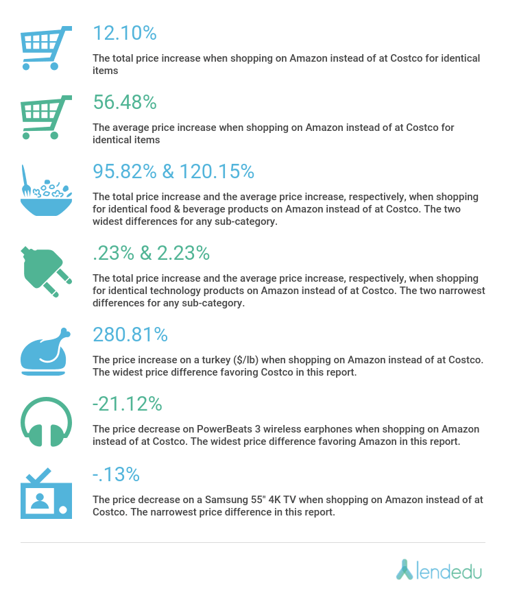 Taking matters into our own hands, LendEDU went shopping at a physical Costco store in Long Island City, New York and browsed Amazon Prime to compare the prices on 38 identical, commonly-bought items.