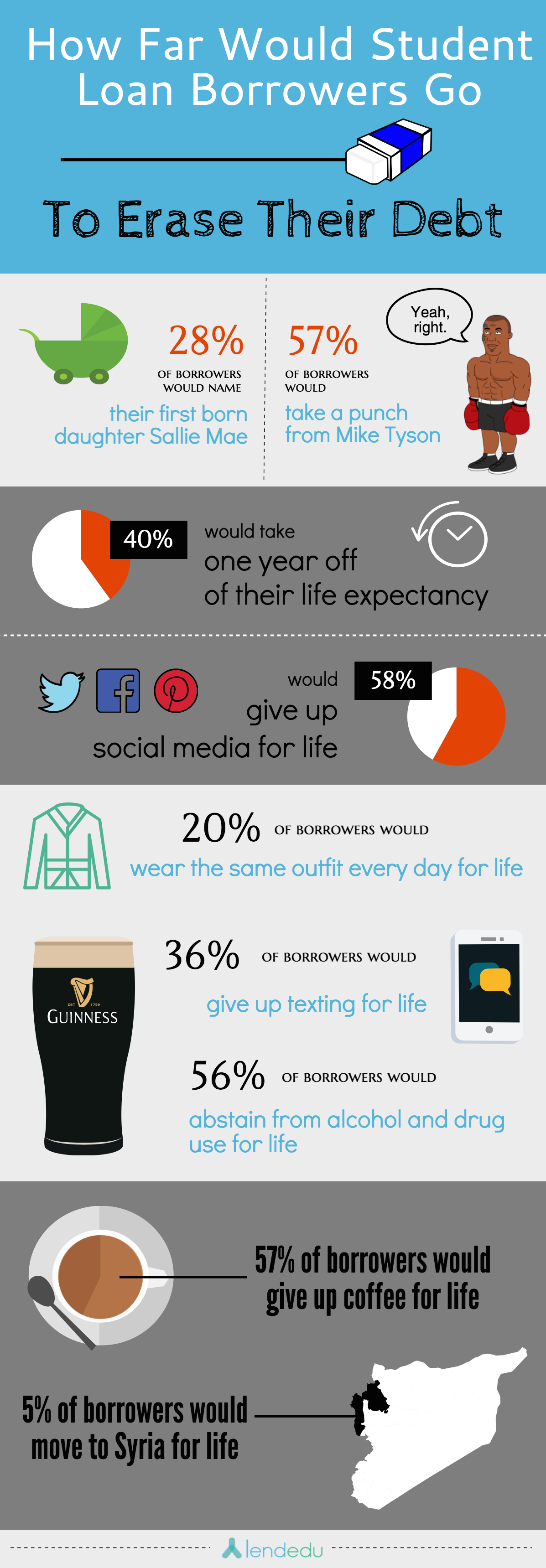 • 56.73 percent of borrowers would take a punch from Mike Tyson, if it meant that they would have no more student loan debt.