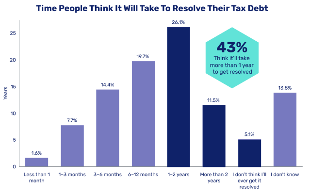 We know this may sound difficult. In LendEDU’s 2025 survey, 43% of our respondents thought it would take them more than one year to resolve their issues with the IRS. That’s a long time! The good news is, as long as you start submitting your paperwork and touching base to create a plan, you can be in good standing within a few days or even hours.